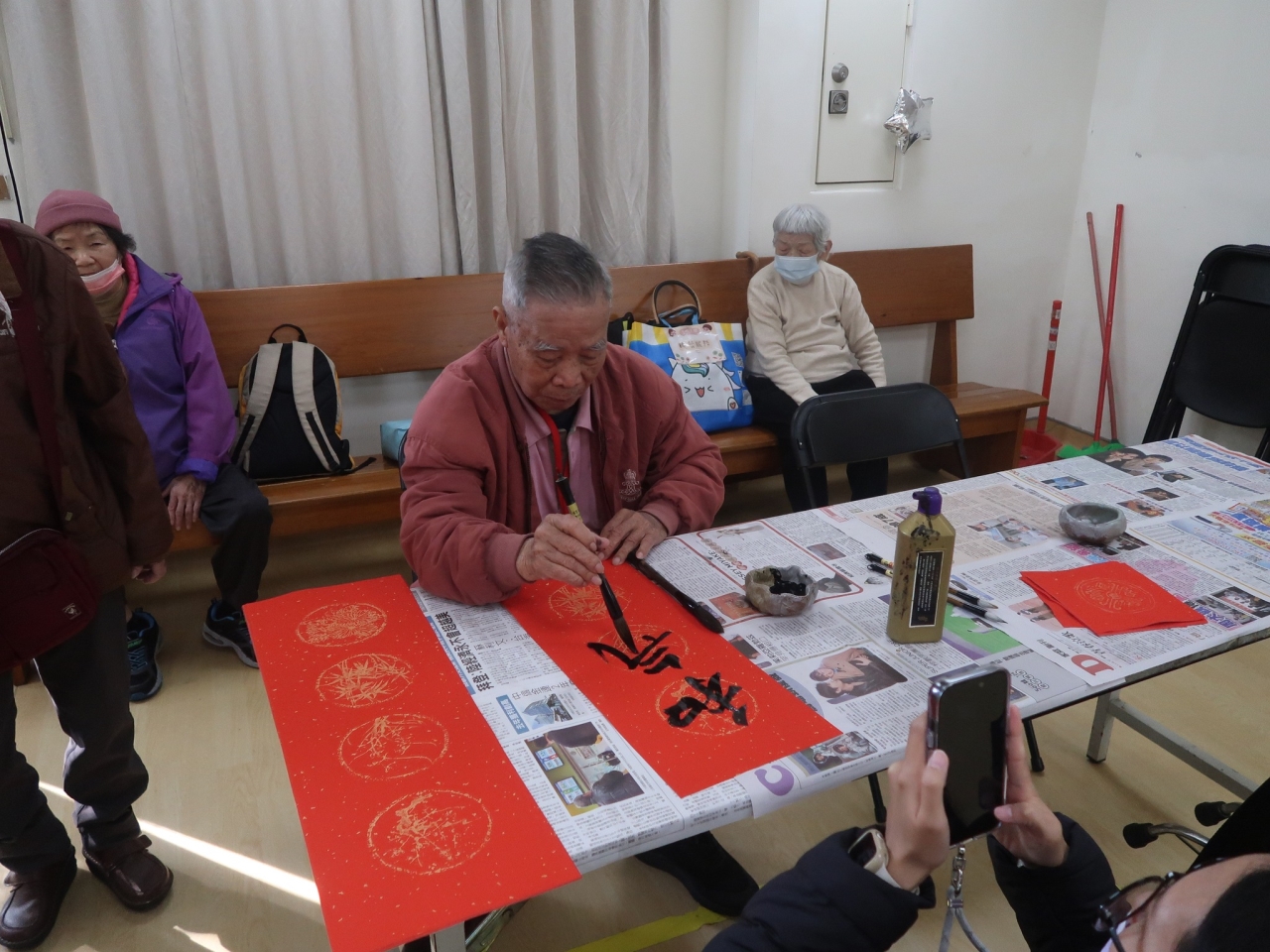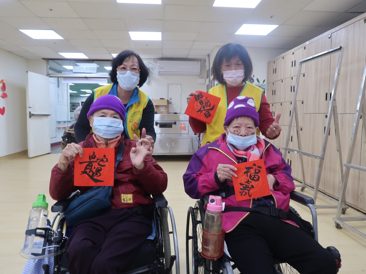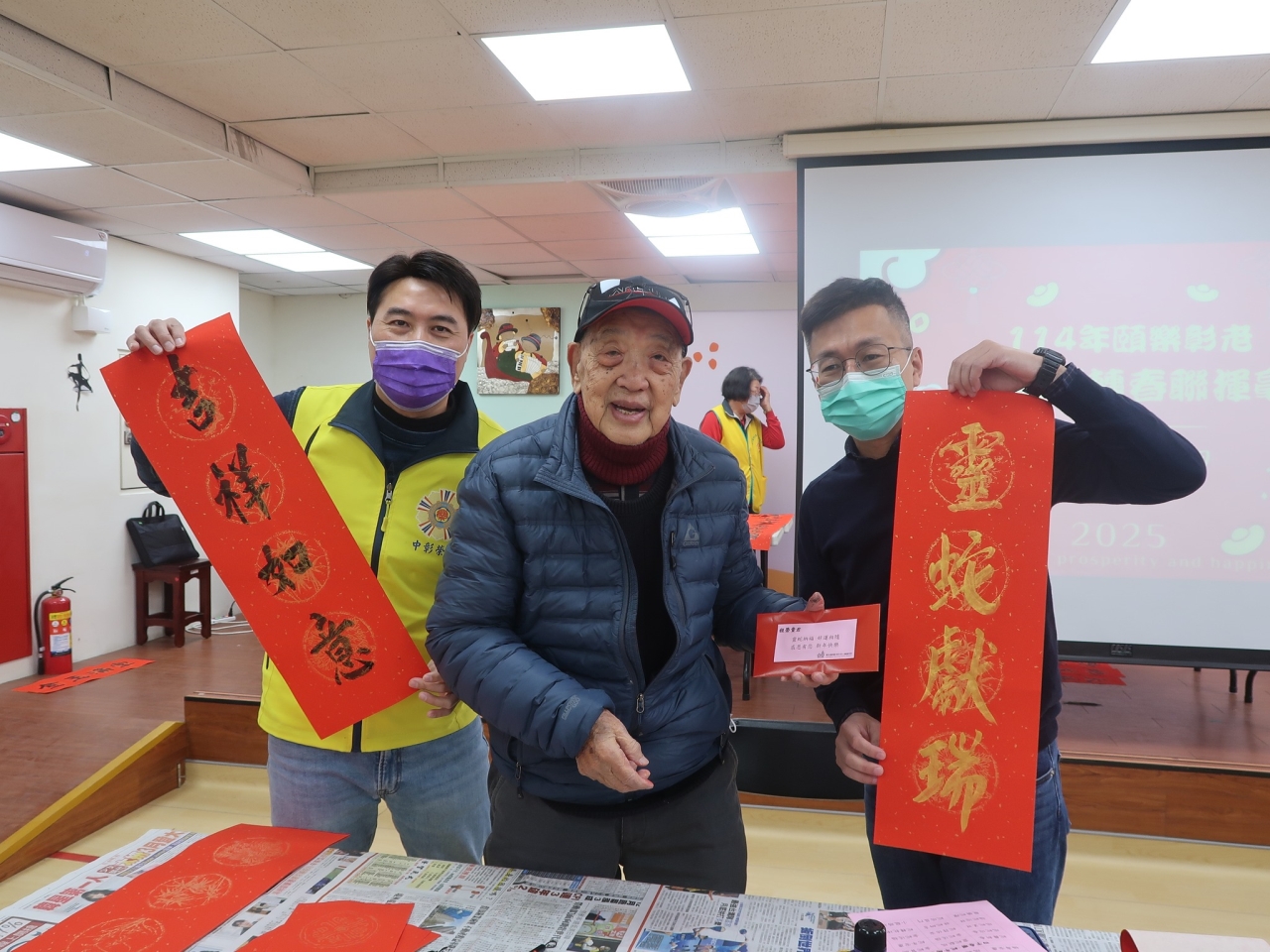114年1月17日中心在農曆年前辦理了蛇來運轉春聯揮毫活動,邀請弘道書法學會榮譽理事長詹坤艋老師外,也邀約好鄰居--退輔會中彰榮家的爺爺奶奶,與中心平常較少有機會動筆的阿公阿嬤們拿起毛筆共同寫下對新一年的期許與祝福。 揮毫後長輩們也帶著春聯與中心同仁及志工,一起拍下賀年團照祝福大家新年快樂,院長也循往例迎佳節添新彩更換春聯,期望蛇年裡中心長輩們皆能福壽安康。